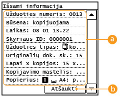 Rodomas kopijų skaičius, parametrai ir kita informacija. Jei norite tik peržiūrėti informaciją ir neatšaukti kopijavimo, paspauskite