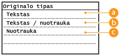 Galite pasirinkti optimalią kopijų vaizdo kokybę, atsižvelgdami į dokumento tipą, pvz., tik teksto dokumentai, dokumentai, kuriuose yra diagramų ar grafikų, arba žurnalo nuotraukos.