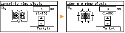 Naikinamo rėmo plotis didinamas arba mažinamas pagal parametrą <Kopijavimo mastelis>.