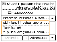 Prieš naudodami šią funkciją, adresų knygelėje turite užregistruoti adresatus.