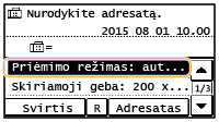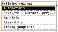 Galite nustatyti, kad aparatas automatiškai priimtų faksogramas, kai priimamo skambučio signalas skamba nurodytą laikotarpį. Įjungti automatinį priėmimą