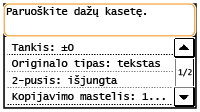 Kai beveik baigsis dažomieji milteliai, aparatas rodys pranešimą. Atkreipkite dėmesį, kad nesiimant jokių veiksmų ir spausdinant toliau, spausdinimo kokybė prastės. Likusį dažomųjų miltelių lygį galite patikrinti ekrane.
