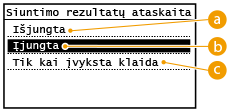 Pasirinkite, jei siuntimo rezultatų ataskaitą norite spausdinti tik įvykus siuntimo klaidai.