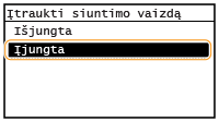 Pasirinkus <Įjungta> arba <Tik kai įvyksta klaida>, į ataskaitą galima įtraukti dalį faksogramos. Bakstelėkite <Įtraukti siuntimo vaizdą> ir nustatykite <Įjungta>.