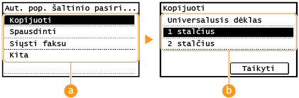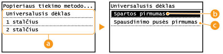 ) buvo pasirinkta <Spausdintuvas>. Kai spausdinama ant popieriaus, tiekiamo iš universaliojo dėklo, automatinio stalčiaus pasirinkimo funkcija visada yra įjungta.