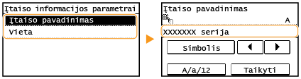 Įveskite aparatą identifikuojantį ne daugiau kaip 32 raidinių skaitinių simbolių vardą ir rengimo vietą.