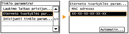 <Belaidžio LAN informacija> ir pasirinkite norimą peržiūrėti parametrą.