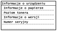 Za pomocą tej opcji można wyświetlić informacje o stanie maszyny np. ilość pozostałego papieru lub toneru.
