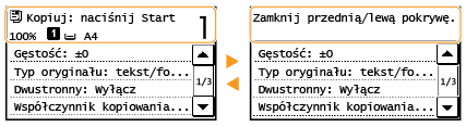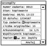 Służy do wyświetlania bieżącego statusu wybranego elementu. Poniżej jako przykład pokazano ekran <Stan zad. kopiowania/drukow.>.