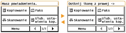 Gdy wyświetlany jest komunikat <Masz powiadomienia.> lub <Dotknij ikonę z prawej ->>