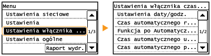 Informacje na temat zmiany ekranu wyświetlanego, gdy urządzenie pozostaje bezczynne przez określony czas, znajdują się w sekcji: