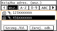 Lista dostępnych odbiorców jest ograniczona do pozycji zapisanych w książce adresowej. Jeśli w książce adresowej nie zapisano żadnych odbiorców, należy to zrobić przed użyciem tej funkcji.