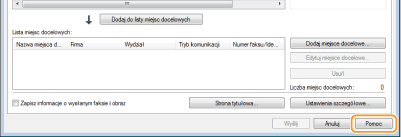 Do ekranu Pomoc można przejść, klikając pozycję [Pomoc] na ekranie sterownika faksu. Na ekranie znajdują się informacje niedostępne w e-Podręczniku, w tym informacje o funkcjach sterownika, takich jak zapisywanie często używanych ustawień, oraz instrukcje dotyczące korzystania z tych funkcji.