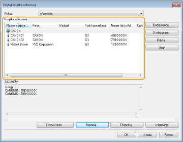 Pozycje zaimportowane z pliku są wyświetlane w oknie [Książka adresowa].