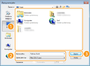 Zapisz plik książki adresowej w folderze, do którego posiadasz uprawnienia zapisu, na przykład [Μy Documents] (Moje dokumenty).