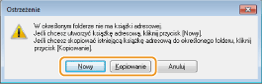 Jeśli w folderze wskazanym w kroku 4 istnieje już książka adresowa, wyświetlany jest następujący komunikat. Aby użyć istniejącej książki adresowej, kliknij pozycję [Użyj, tak jak jest], natomiast w celu wykorzystania książki adresowej sterownika faksu kliknij pozycję [Zastąp].