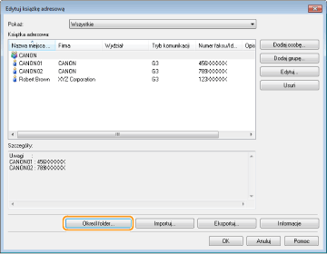 Dostęp do książki adresowej nie jest możliwy w przypadku braku uprawnień dostępu do folderu, w którym zapisano książkę adresową. Należy zalogować się jako użytkownik z uprawnieniami dostępu do tego folderu lub zmienić lokalizację zapisu książki adresowej.