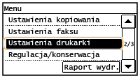 Wszystkie ustawienia z listy dotyczące drukarki są opatrzone krótkim opisem. Ustawienia domyślne oznaczone są przy pomocy znaku (  ).