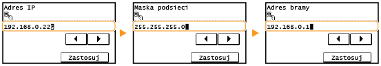 <Maska podsieci> <Adres bramy>.Wprowadź każde powyższe ustawienie za pomocą klawiszy numerycznych i dotknij przycisku <Zastosuj>.