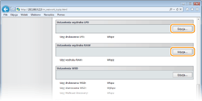 Kliknij [Edycja...] w [Ustawienia wydruku LPD] lub [Ustawienia wydruku RAW].