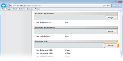 Zaznaczenie tego pola wyboru umożliwia uzyskanie informacji o urządzeniu przez komputer za pomocą interfejsu WSD. To pole wyboru jest zaznaczane automatycznie po zaznaczeniu pola wyboru [Użyj drukowania WSD]. [Użyj skanowania WSD]