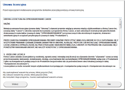 Przeczytaj umowę licencyjną i kliknij przycisk [Yes] (Tak), aby zaakceptować.