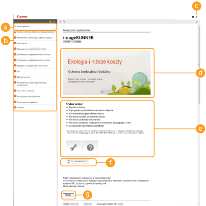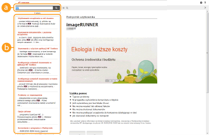 Kliknięcie tego elementu powoduje wyświetlenie instrukcji dotyczących otwierania programu e-Podręcznik, wykonywania wyszukiwania oraz innych informacji.