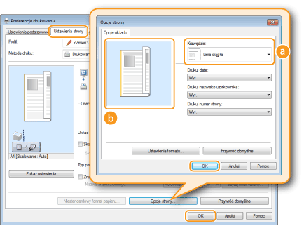 Na wykonanych wydrukach w obszarze marginesów można umieścić obramowania, takie jak na przykład linie przerywane lub podwójne.