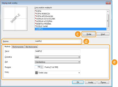 Kliknięcie tego elementu pozwala utworzyć nowy znak wodny. Można zarejestrować maksymalnie 50 znaków wodnych.