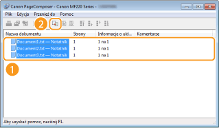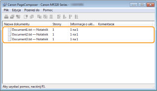 Dokumenty te zostają dodane do programu Canon PageComposer.