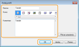 Wprowadź nazwę profilu w polu [Nazwa], wybierz ikonę, po czym kliknij przycisk [OK].