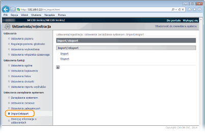 Podczas procesu importu lub eksportu nie należy używać urządzeniaPrzed przystąpieniem do importu/eksportu danych należy upewnić się, że żadne zadania drukowania dokumentów nie są aktualnie przetwarzane.
