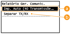 Toque em <Ativado> para imprimir relatórios de envio e receção separadamente ou <Desativado> para imprimir ambos os relatórios numa folha.