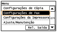 Todas as definições relativas a fax são apresentadas com breves descrições. As predefinições estão assinaladas com uma cruz (