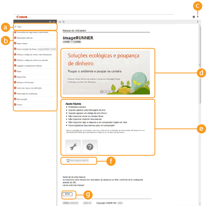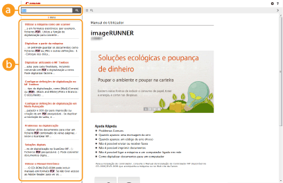 Clique para visualizar informações sobre como ver o Manual Eletrónico, como efetuar uma pesquisa e outras informações.