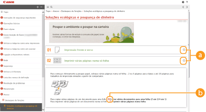 Apresenta os resultados de procura das páginas que contêm as palavras-chave especificadas. A partir dos resultados, localize a página procurada e clique no título do tópico da página.