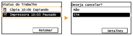 Cancelar a partir da UI RemotaPode cancelar a impressão a partir da página [Imprimir: Status do Trabalho] na UI Remota: Verificar o estado atual de documentos de impressão