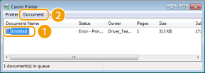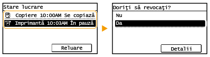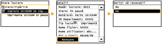 Selectaţi documentul de pe ecranul <Stare lucrare copiere/tipărire>