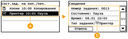 Если печать документов долго не выполняется, можно проверить список документов, ожидающих печати.