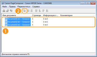 Используя Canon PageComposer, можно объединить несколько документов в одно задание печати и выполнить это задание с указанными настройками печати. Эта функция, например, позволяет объединять документы, созданные в разных приложениях, и печатать все страницы этих документов на бумаге одного формата.