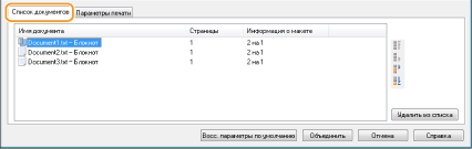 [Document List] (Список документов)/[Print Settings] (Параметры печати)