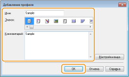 Введите имя профиля в поле [Имя], выберите значок и щелкните [OK].