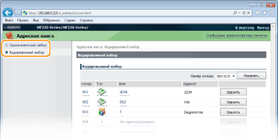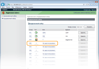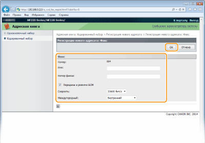 Регистрация адресной книги с помощью удаленного ИП (imageRUNNER 2204F)