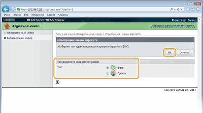 Выберите[Тип адресата для регистрации] и щелкните [OK].