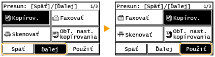 Ťuknutím na <Späť> alebo <Ďalej> presuňte tlačidlo a ťuknite na <Použiť>.