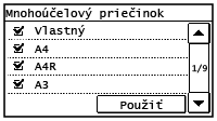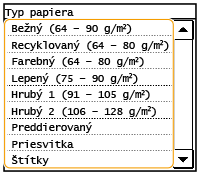 Formáty papiera bez značky začiarknutia sú zobrazené na obrazovke <Formát papiera (iné formáty)>.