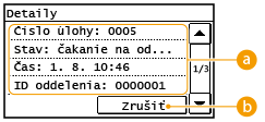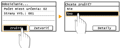 Zobrazí sa počet odosielaných dokumentov, nastavenia a iné detaily. Ak chcete iba skontrolovať detaily bez odoslania, stlačením tlačidla