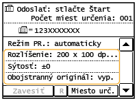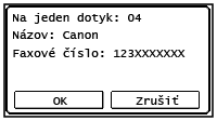 Ťuknite na <Áno>.Ak ste v kroku 2 špecifikovali skupinovú voľbu v skupinovej voľbe, zobrazí sa nápis „XX destination(s)“ (XX miest určenia). Ťuknutím na <Počet miest určenia: @@@> zobrazíte miesta určenia uložené v skupine.
