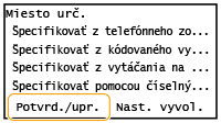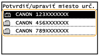 / prepnúť vami špecifikované miesta určenia. Zobrazte miesto určenia, ktoré chcete zmazať, a stlačte . |