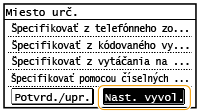 Keď je voľba <Obmedziť opätovné odosielanie z výpisu> nastavená na <Zap.>, nemôžete použiť túto funkciu. Deaktivácia použitia predtým použitých miest určenia (imageRUNNER 2204F)
